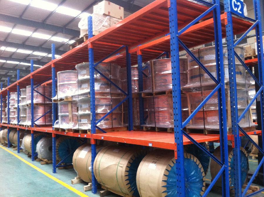 重型貨架,也稱為橫梁貨架,攜帶大。一般使用托盤來獲取貨物,并與叉車配合裝卸。容易找到,你可以迅速拿出貨物,是一個(gè)先到先出的存儲(chǔ)設(shè)備,可搭配木板、鋪鋼板、儲(chǔ)物籠等通道物品。